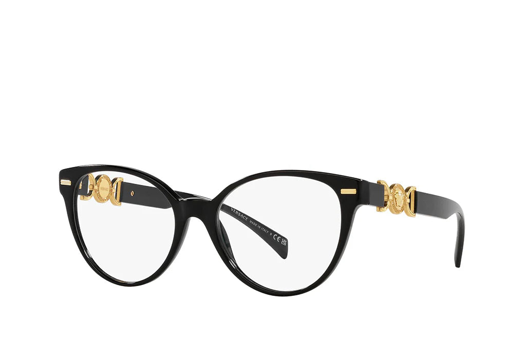 Versace Eyewear showcase Greek-inspired motifs, gold embellishments, and baroque detailing, perfect for those who love luxury with an edge